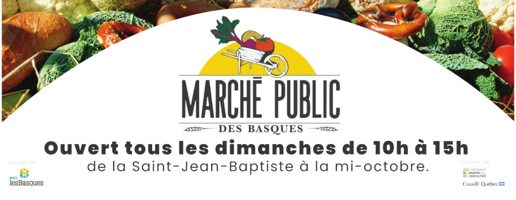Le Marché public des Basques se tient chaque dimanche de 10 h à 15 h au 231 rue de la Gare (ancienne gare de Via Rail) à Trois-Pistoles, de la mi-juin à l’Action de Grâce. Les producteurs agricoles et artisans régionaux vous y donnent rendez-vous.