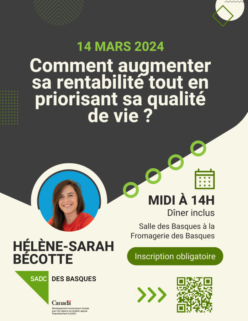 Conférence « Comment augmenter sa rentabilité tout en priorisant sa qualité de vie ? » par Hélène-Sarah Bécotte