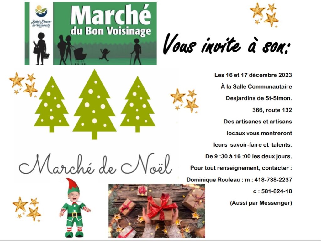 Le Marché de Noël aura lieu à la Salle communautaire Desjardins, de 9h30 à 16h