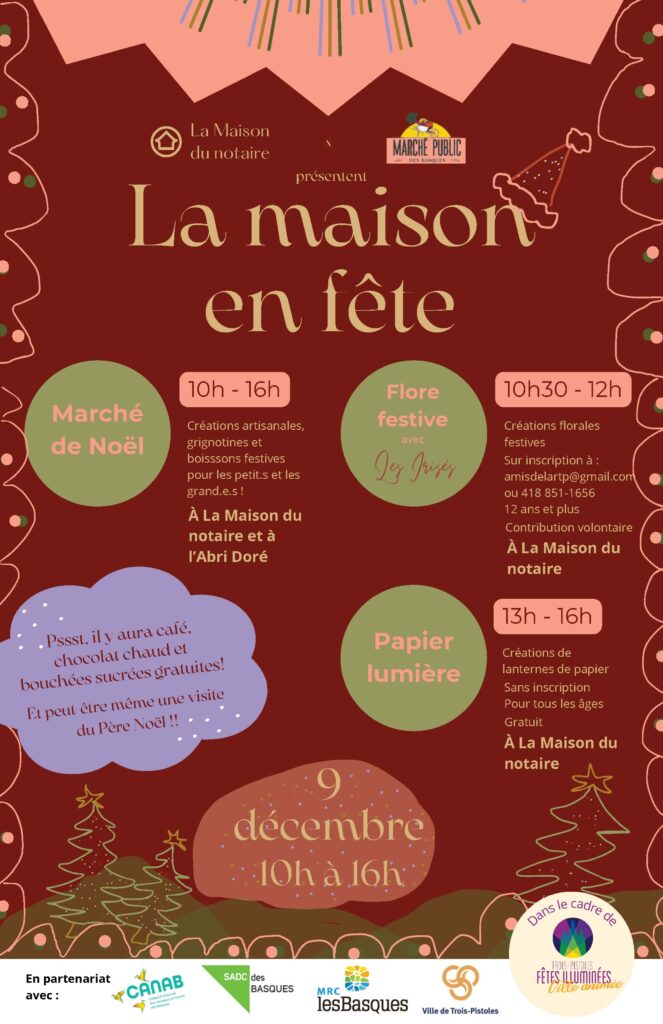 Organisé par La Maison du Notaire! Le 9 décembre de 10h à 16h Création artisanales, grignotines, boissons festives!