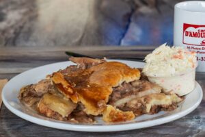 Repas léger, frites, soupe et cipaille maison, poutine et poulet frit, un incontournable lors de votre passage dans les Basques!
